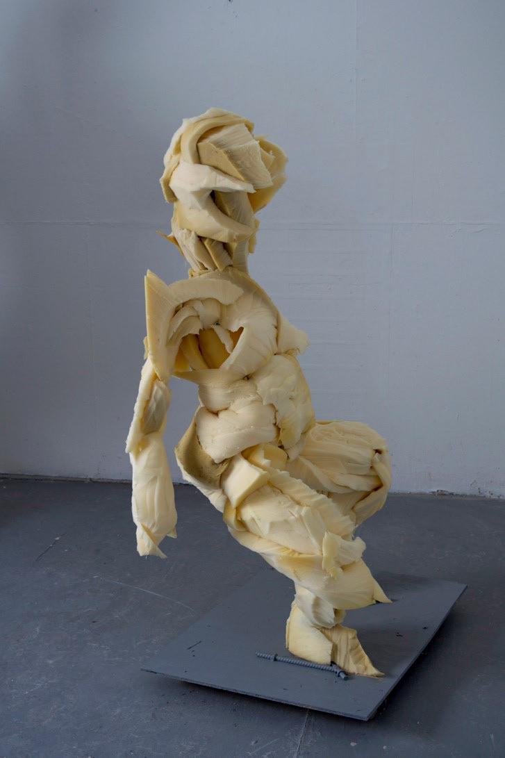 Twist, 75" x 40" x 40" foam, wood, paper, rebar, mixed media.