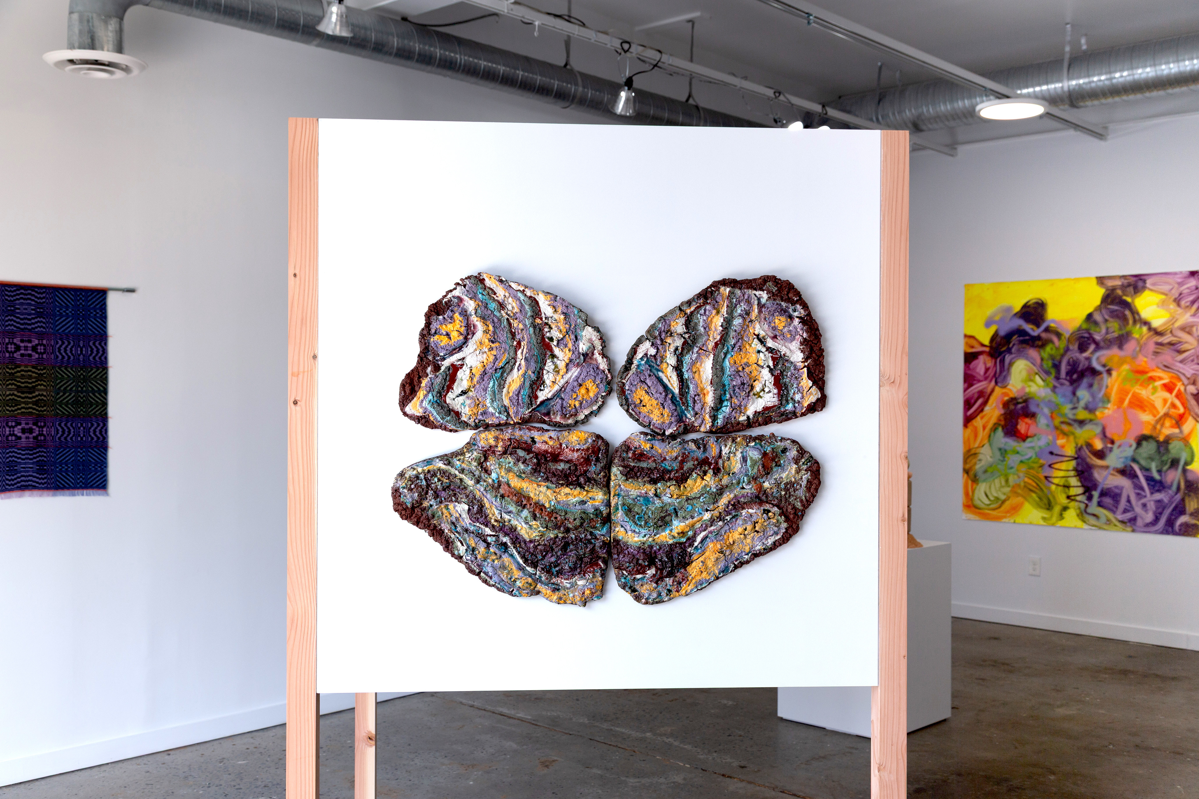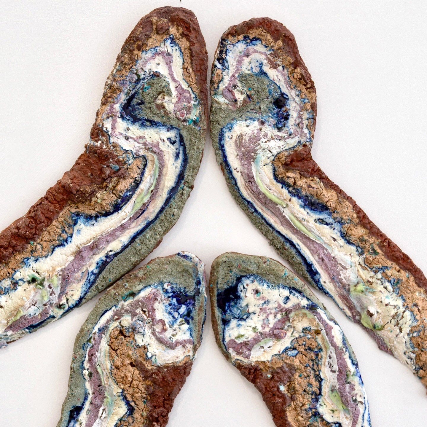 Ascending , 2025, Native clay, colored clay, glaze, 24 w x 27 h x .5d in