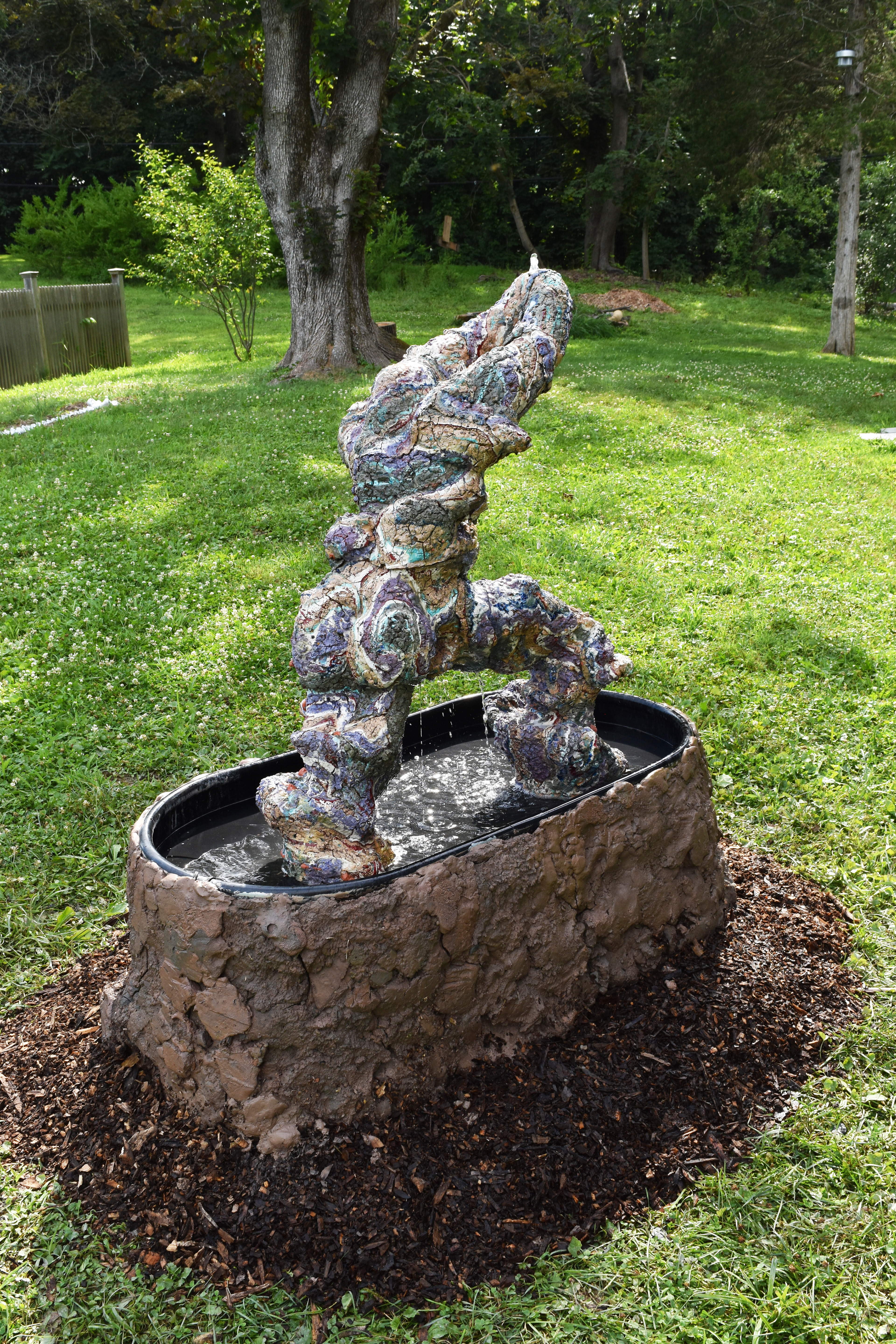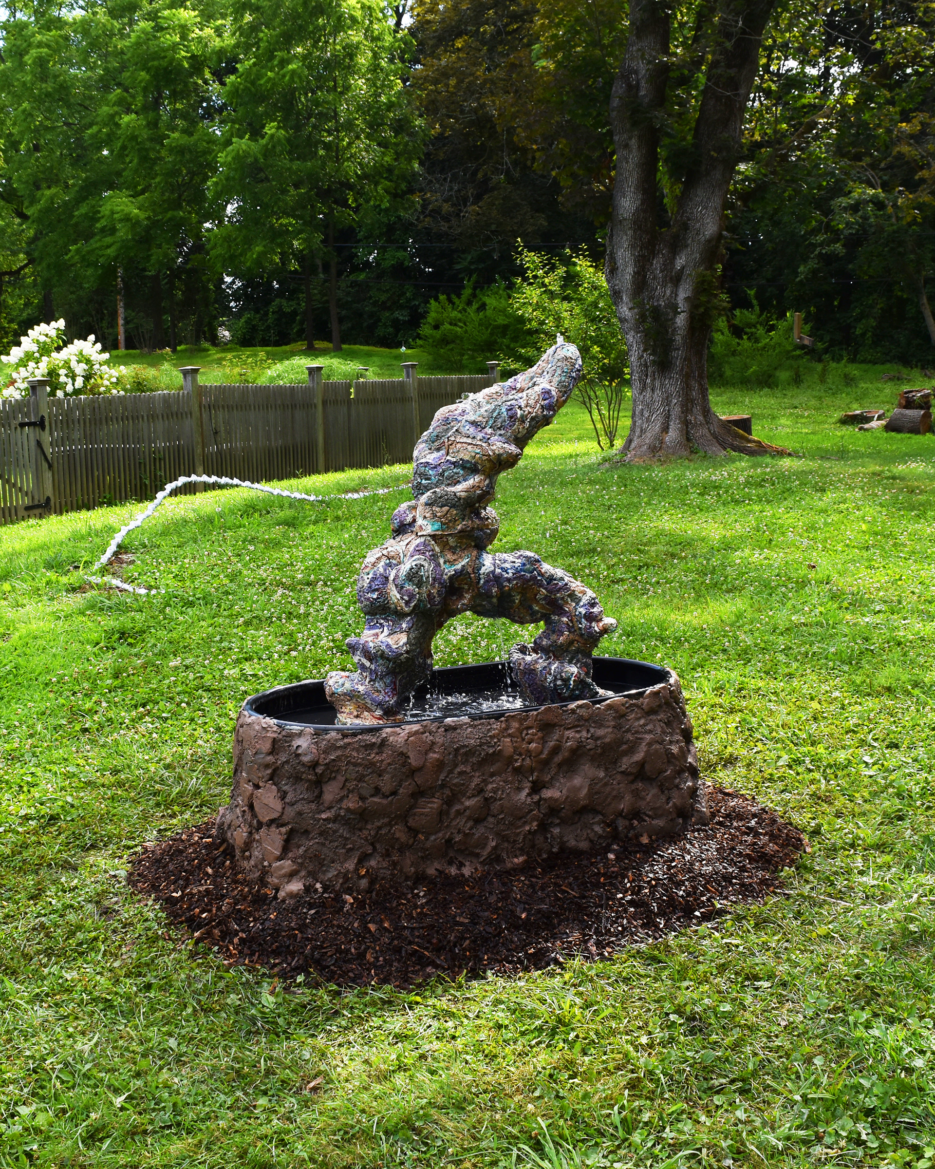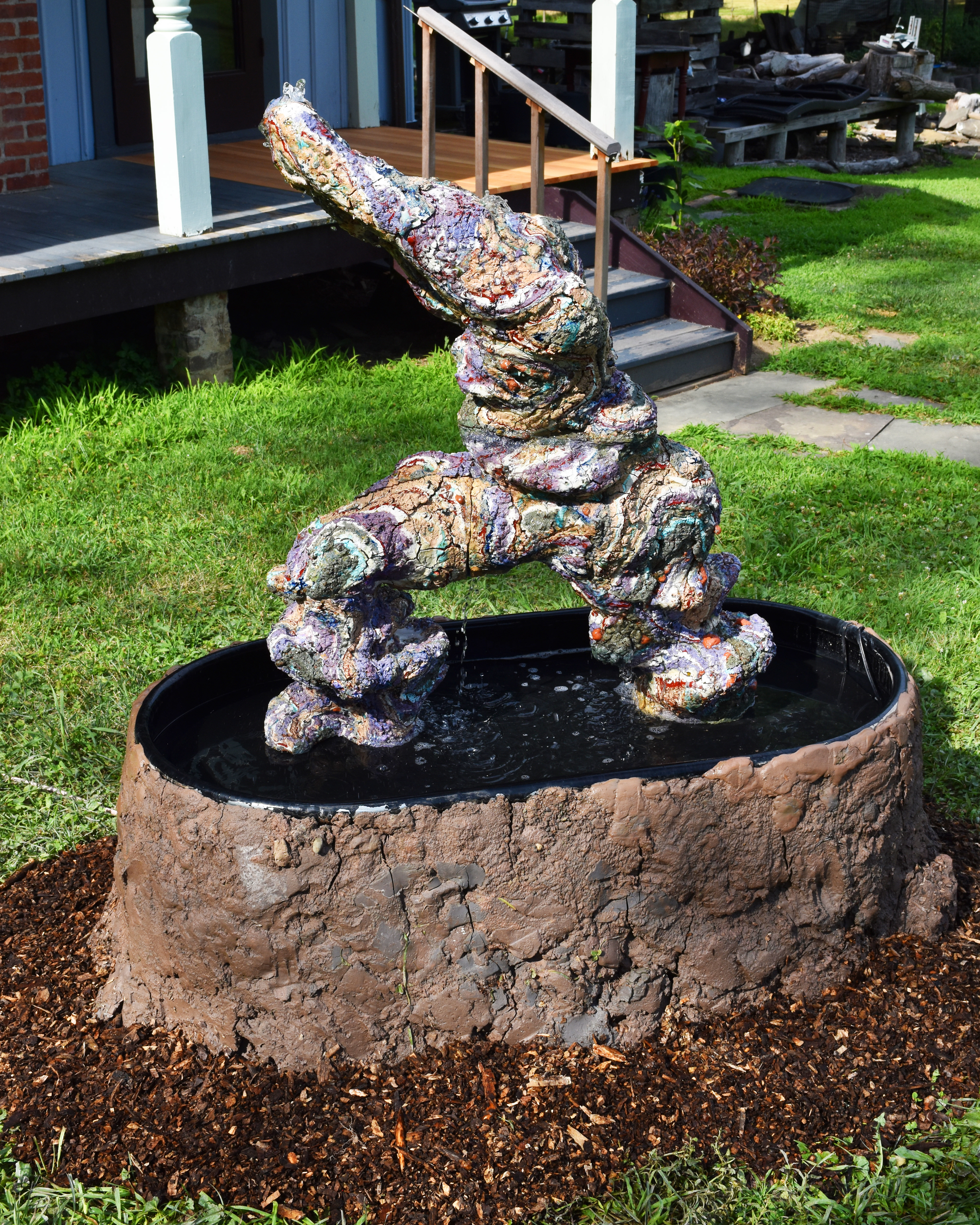 Ceramic, steel, water, plexiglass, concrete, pump, tubing, clay dug from stream in Catskill Mountains NY,