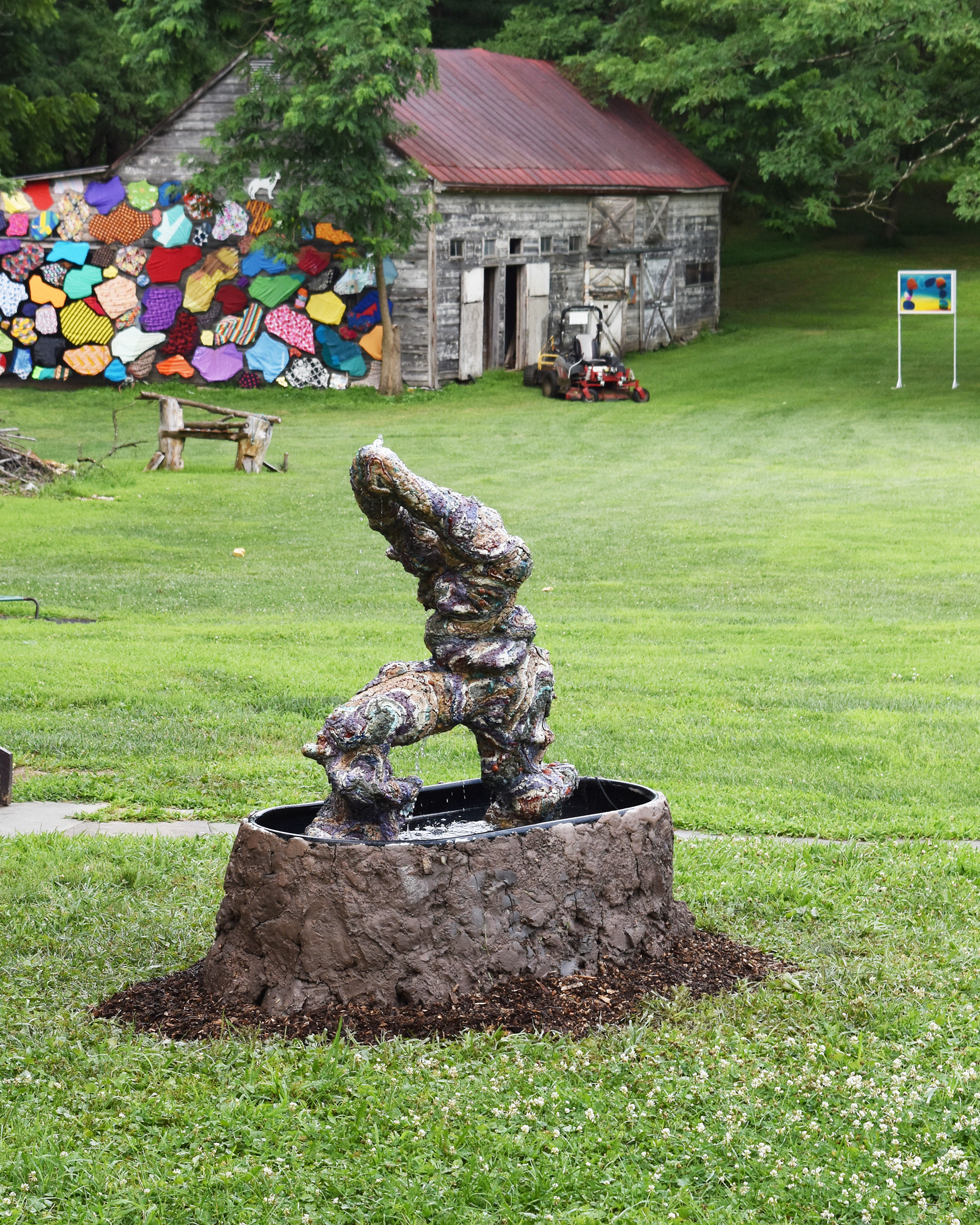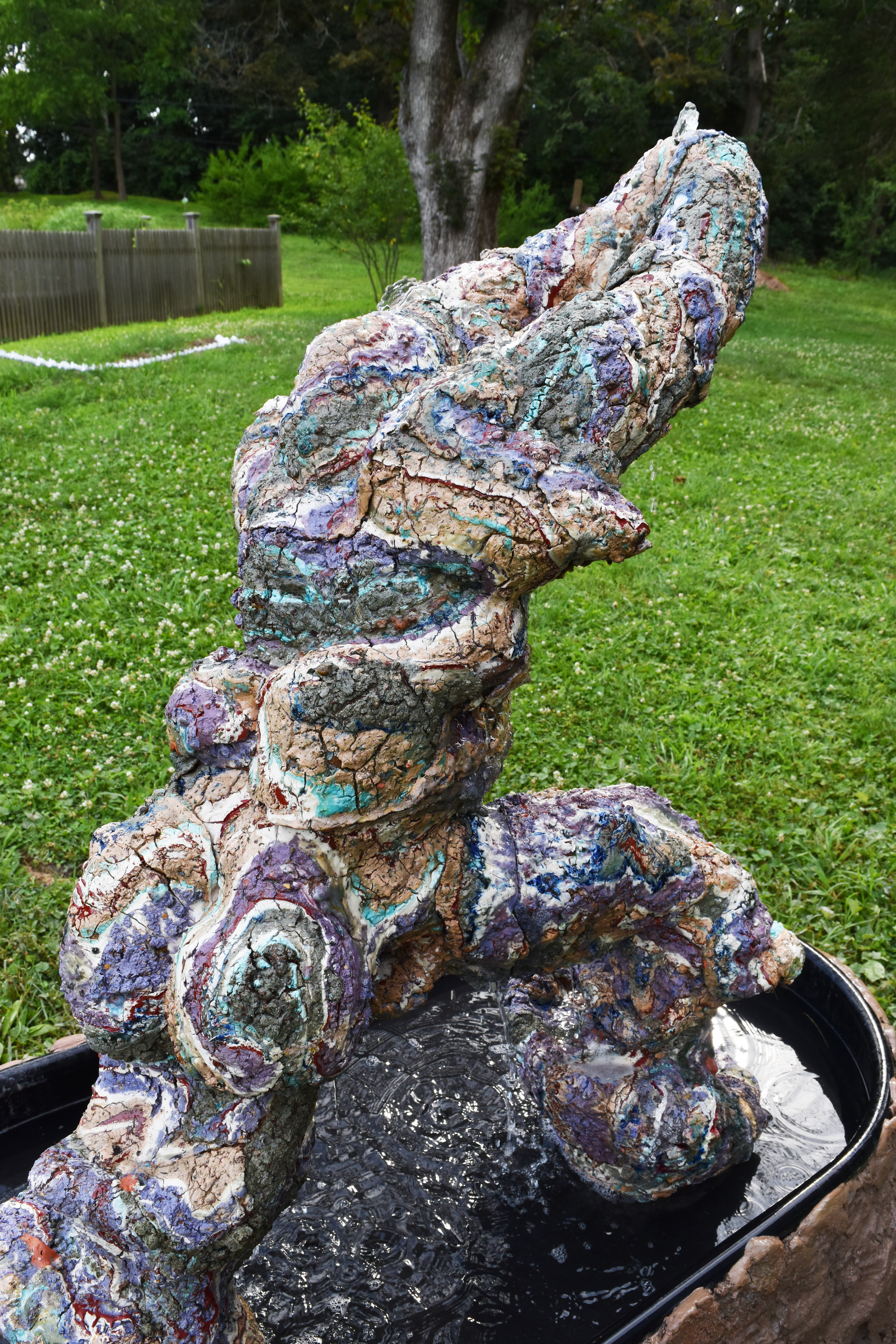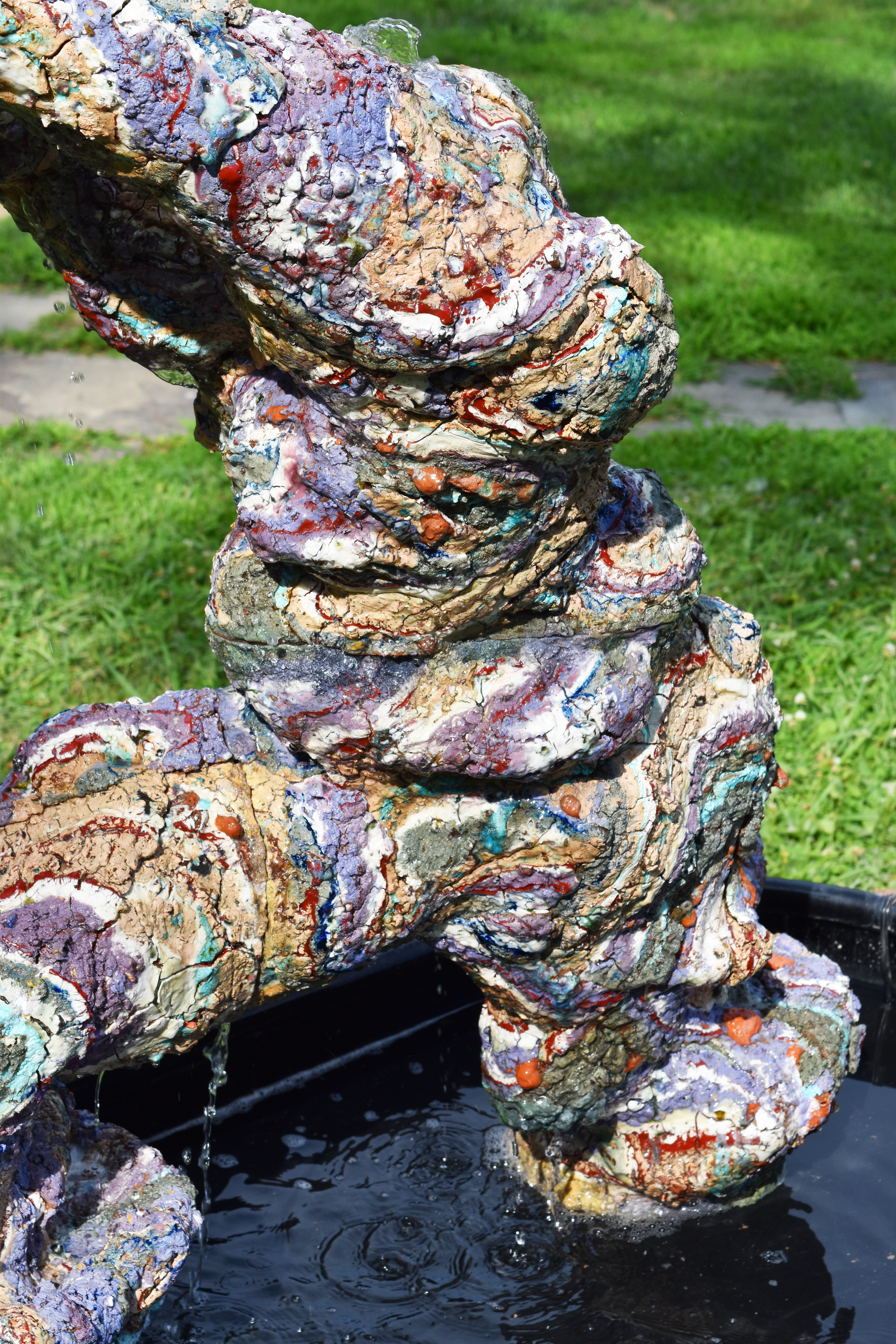 Ceramic, steel, water, plexiglass, concrete, pump, tubing, clay dug from stream in Catskill Mountains NY,