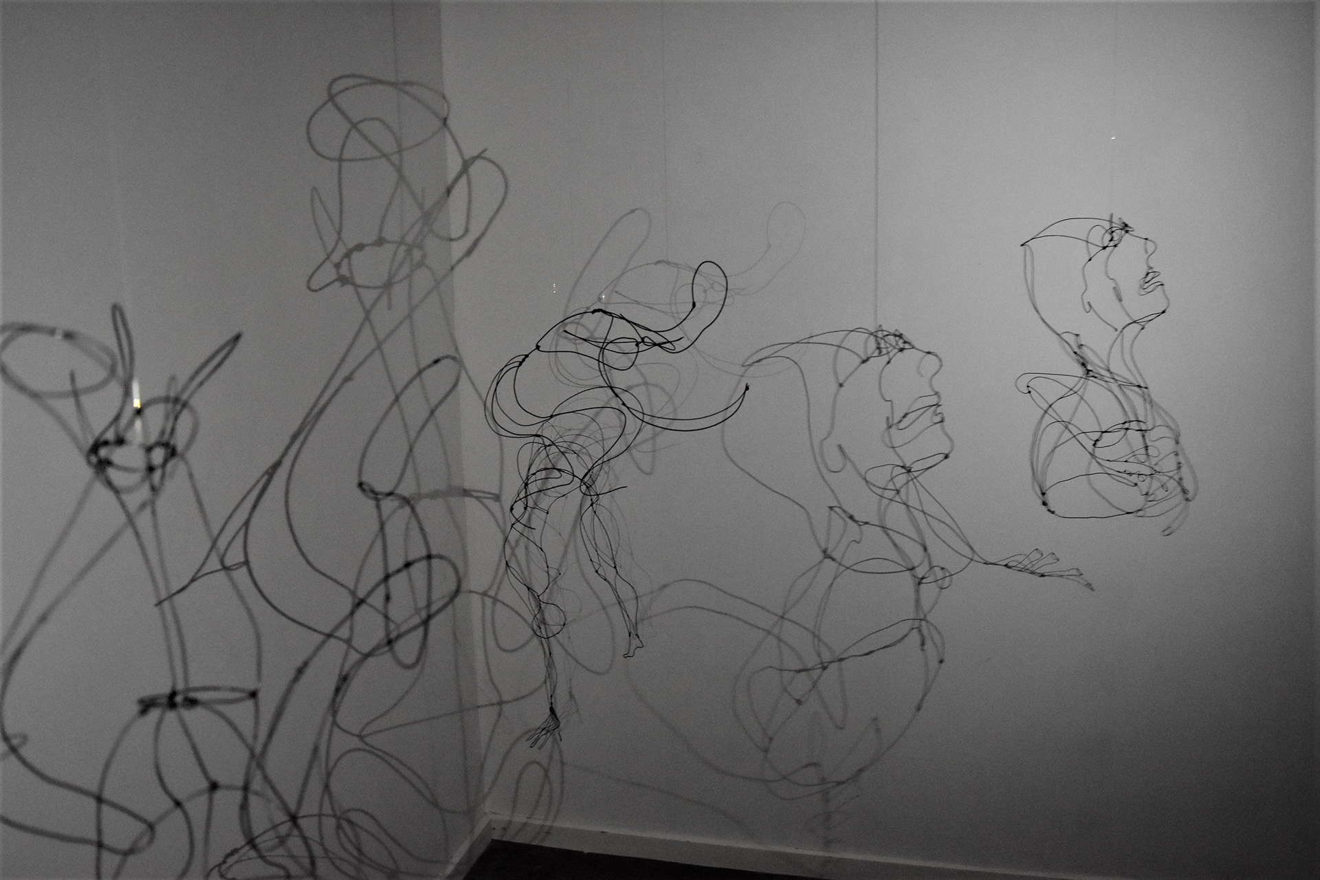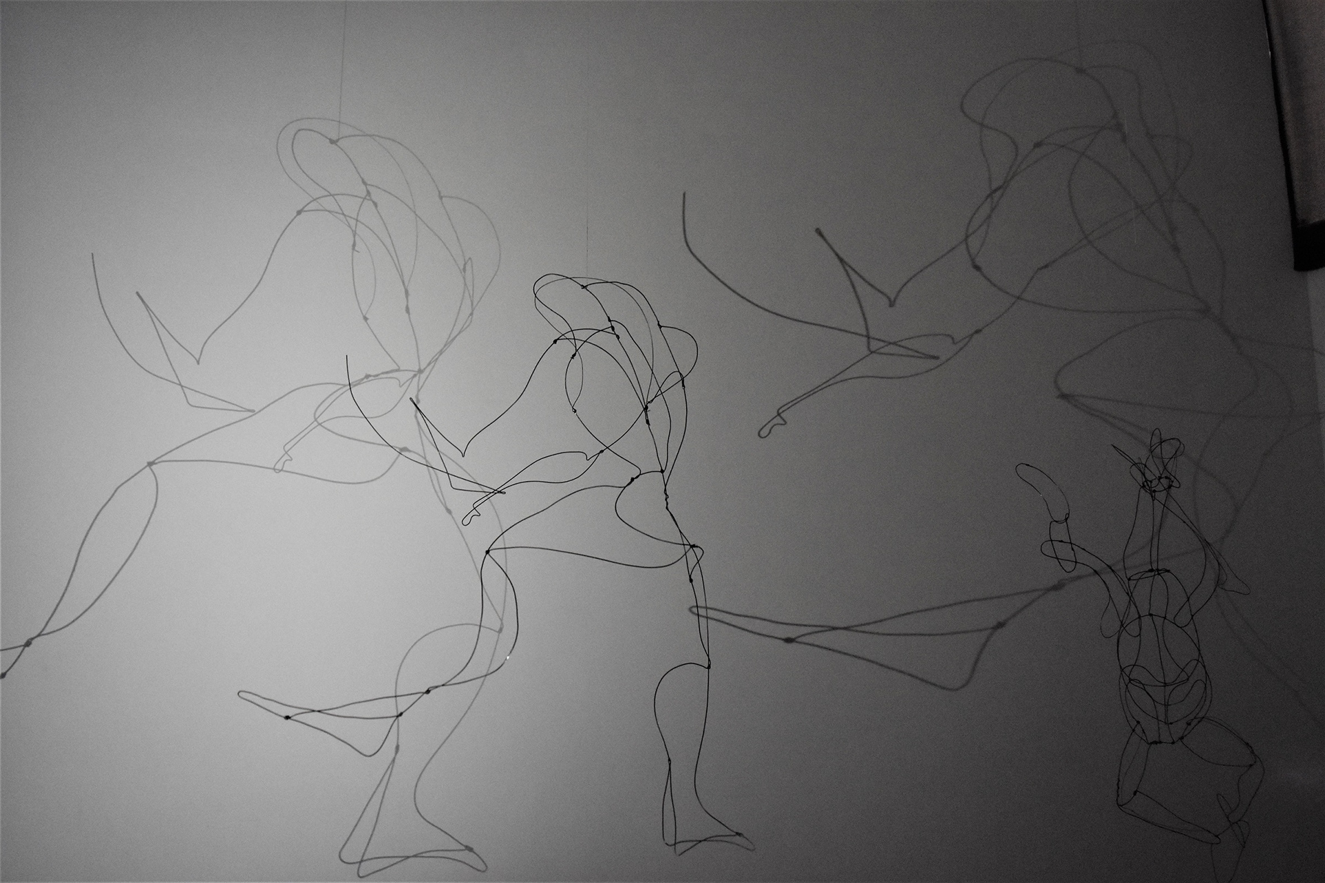 Audience discovers 10 wire sculptures and make shadows dance with flashlights.